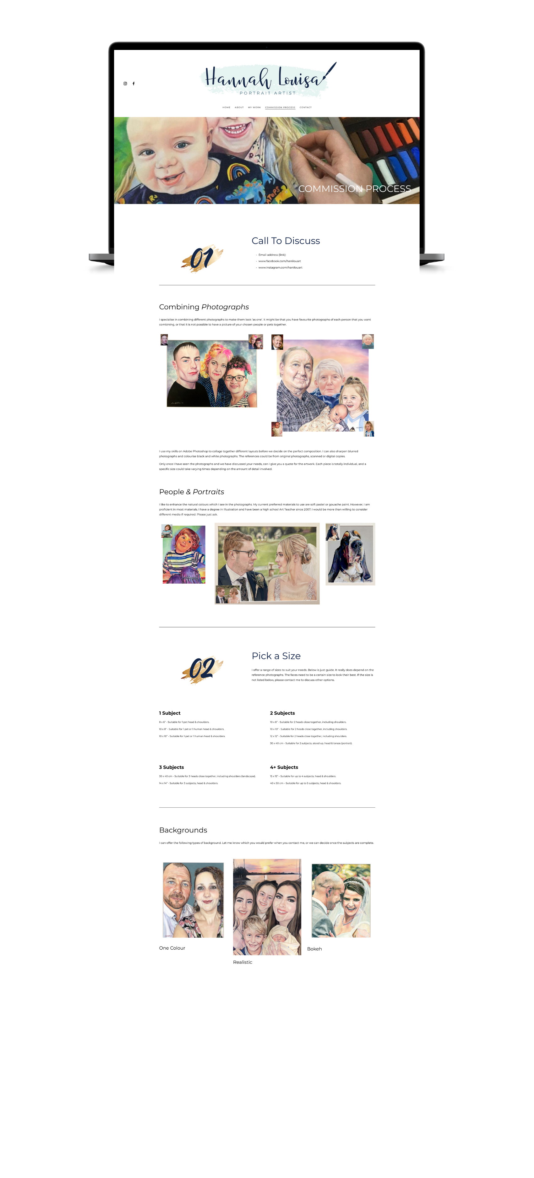 I designed the new branding colour palette, logo and look of the newly designed website. This Portrait Artist website was designed on Squarespace 7.1.