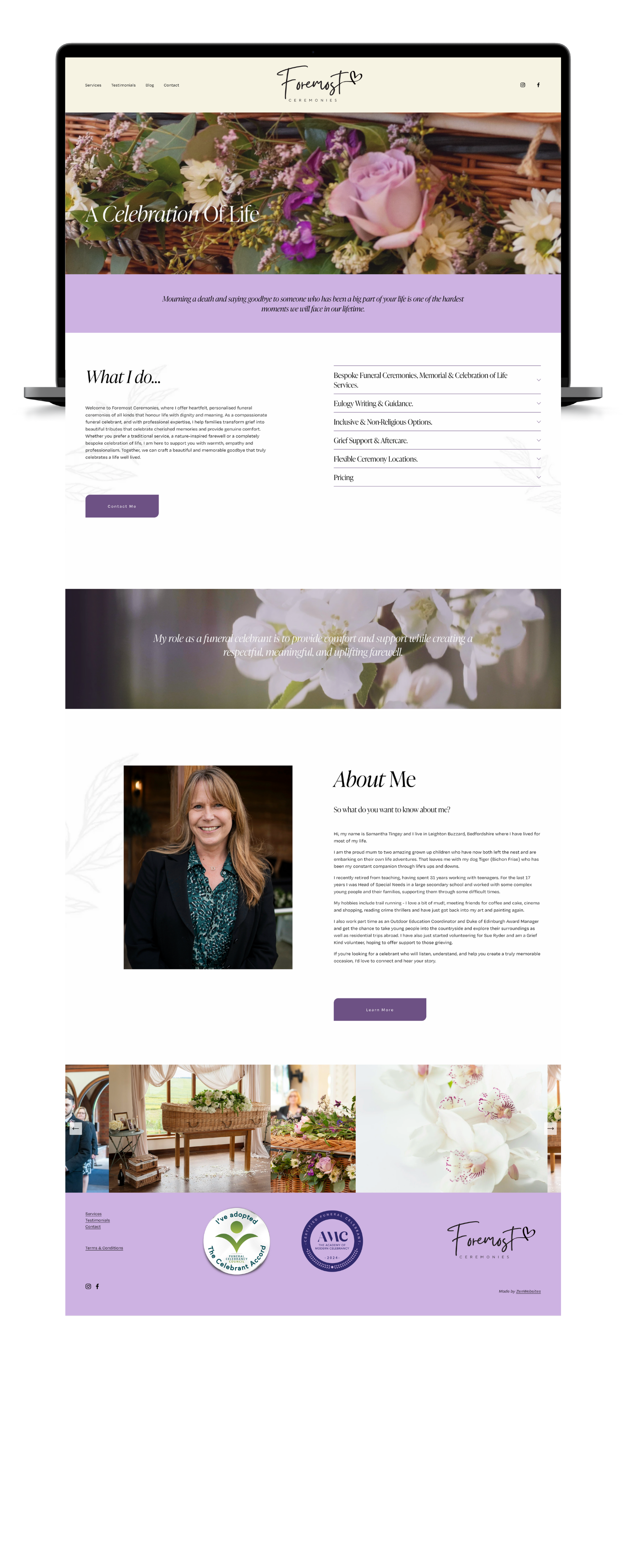 I designed the new branding colour palette, logo and look of the newly designed website. This Funeral Celebrant website was designed on Squarespace 7.1.